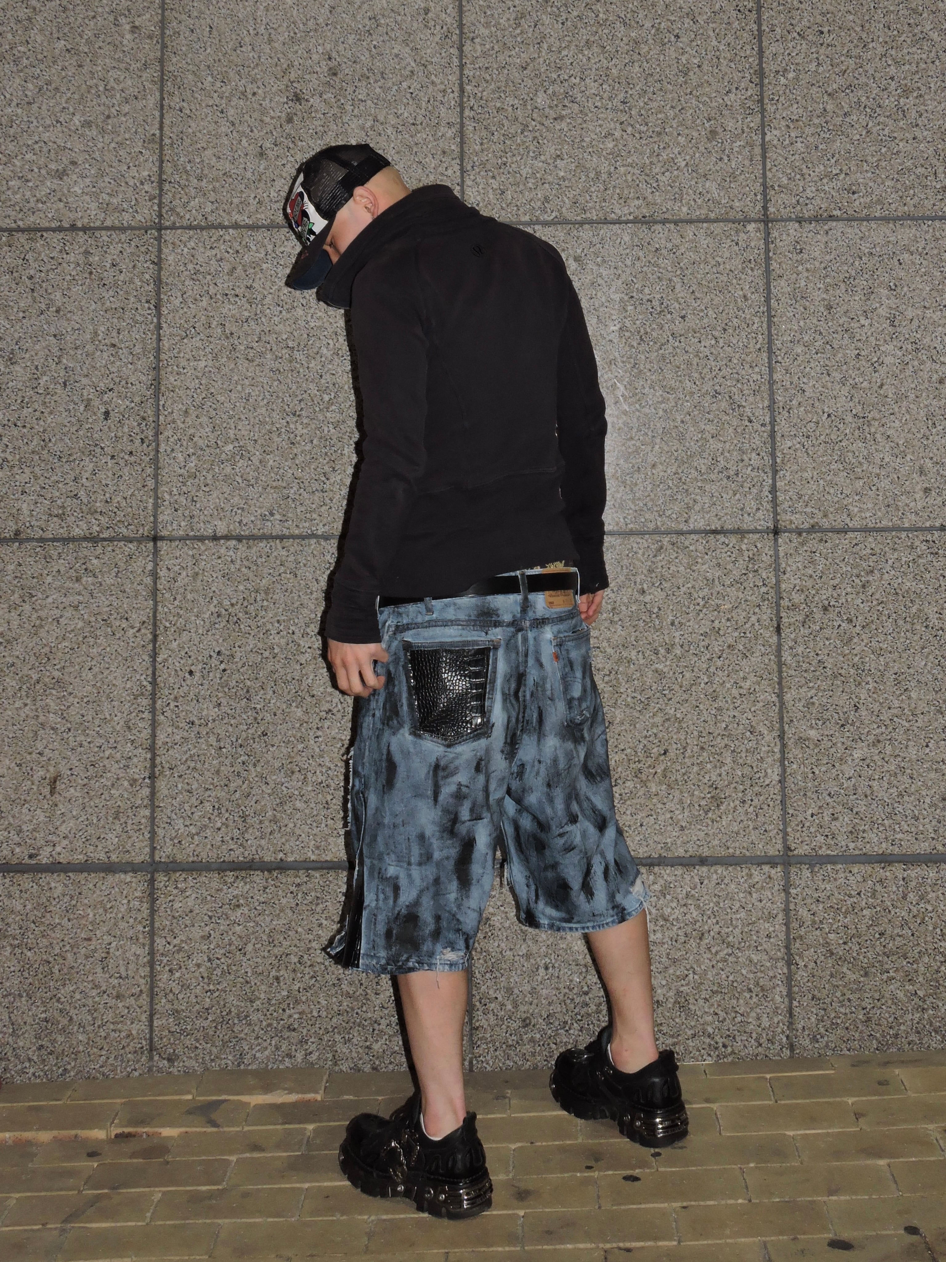 crocodile leather ハーフデニム blackwax加工 LEAN