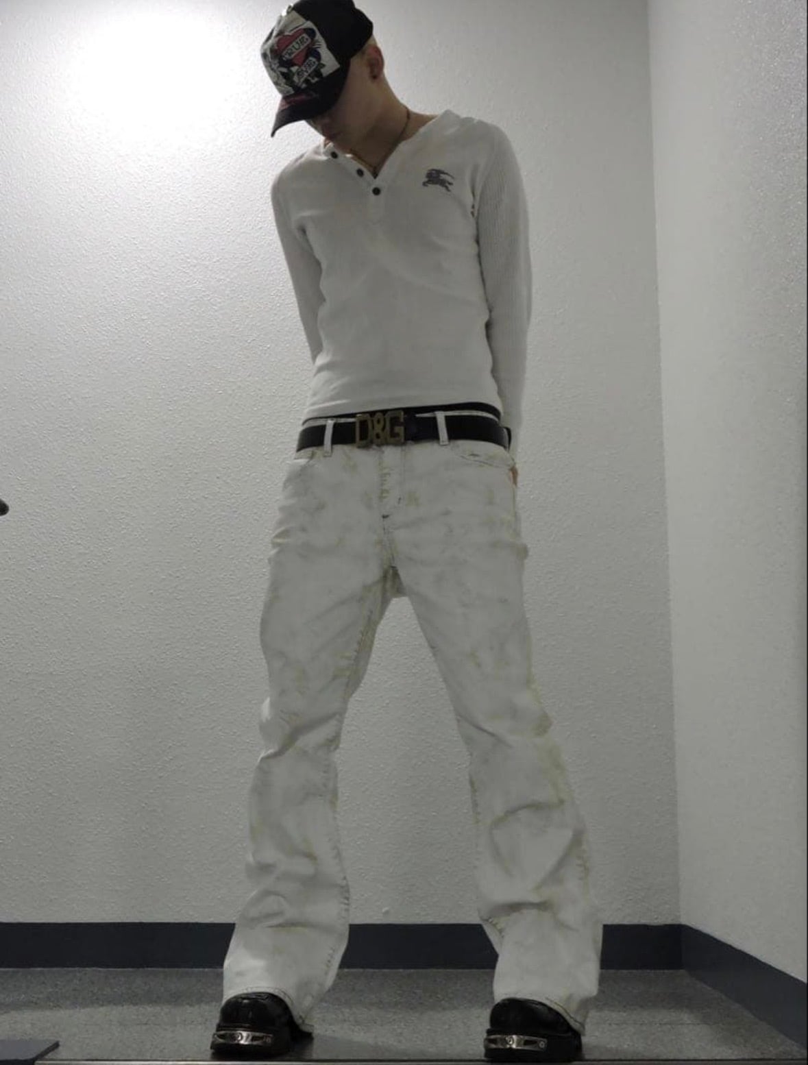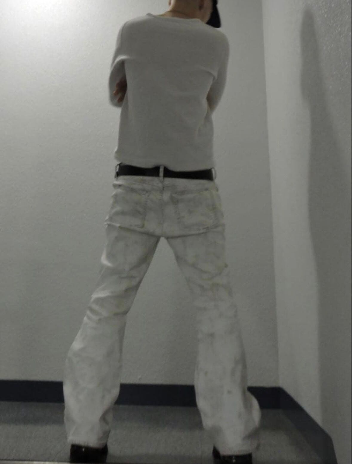 wax coating white flare denim LEAN